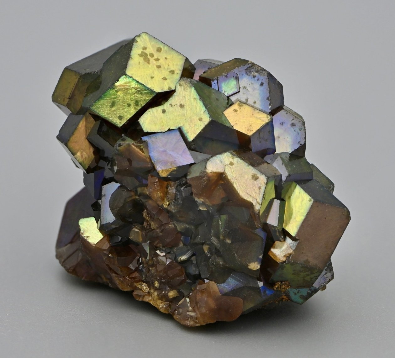 这种具有彩虹般绚丽干涉色的石榴石,首次发现是在1943年,于美国内华达州的Adelaide矿区。不过该矿区产出的石榴石并没有达到宝石级别。