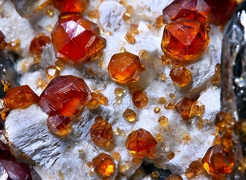 接着在墨西哥索诺拉州的方解石矿山,在1954年也发现了这样存在干涉色的石榴石,不过当时却被认为是低品质的蛋白石而忽视了。