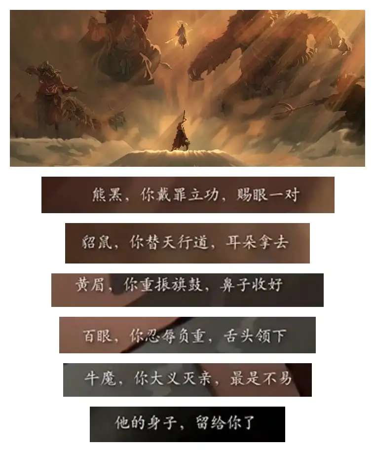 在遊戲中,悟空死後,屍身被楊分給了5個有功的妖王。
