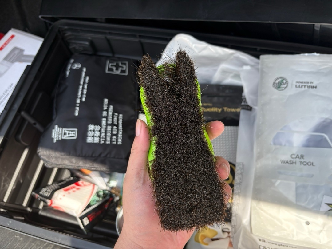 最好选动物毛不伤内饰,这个可以洗方向盘、可以真皮部分,我一般搭配内饰清洁剂使用。