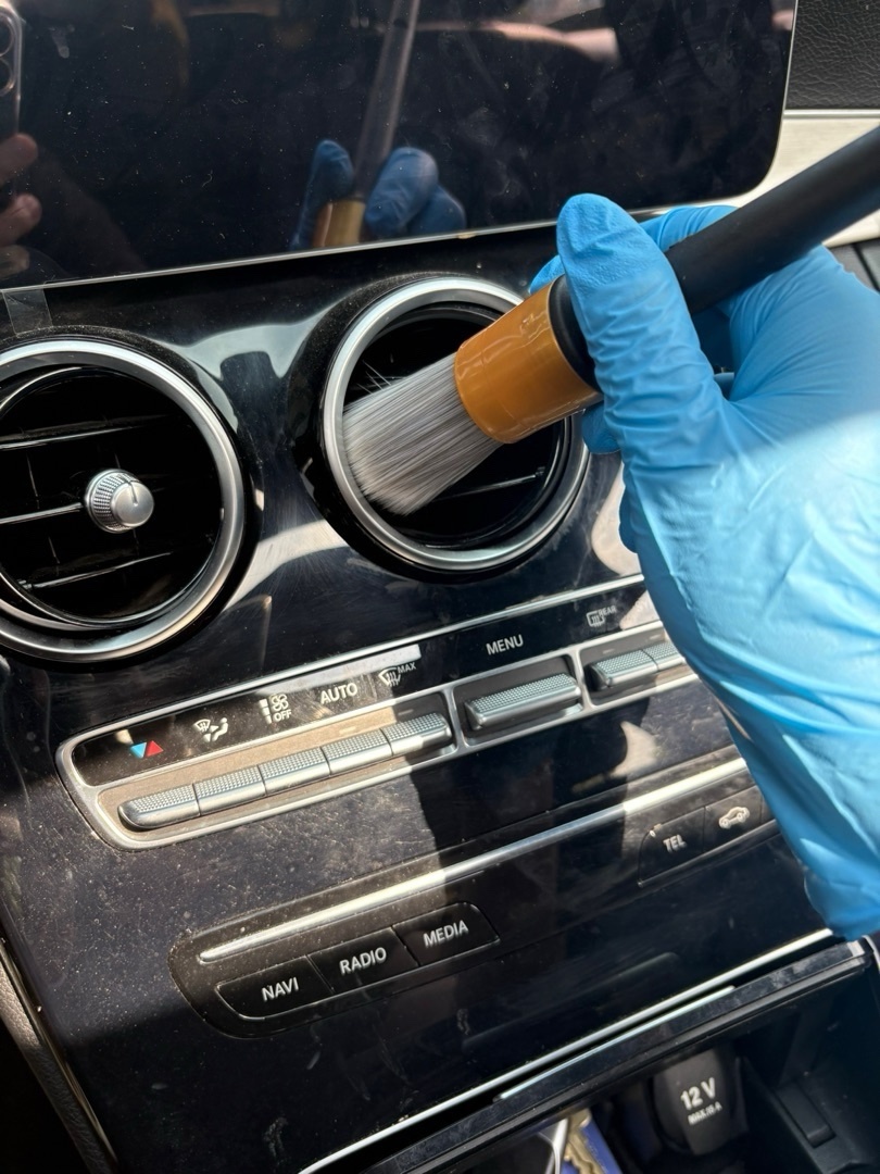 可以搭配泡沫清洁剂清洗空调出门口、扶手储物柜、门储物柜等角落地方。