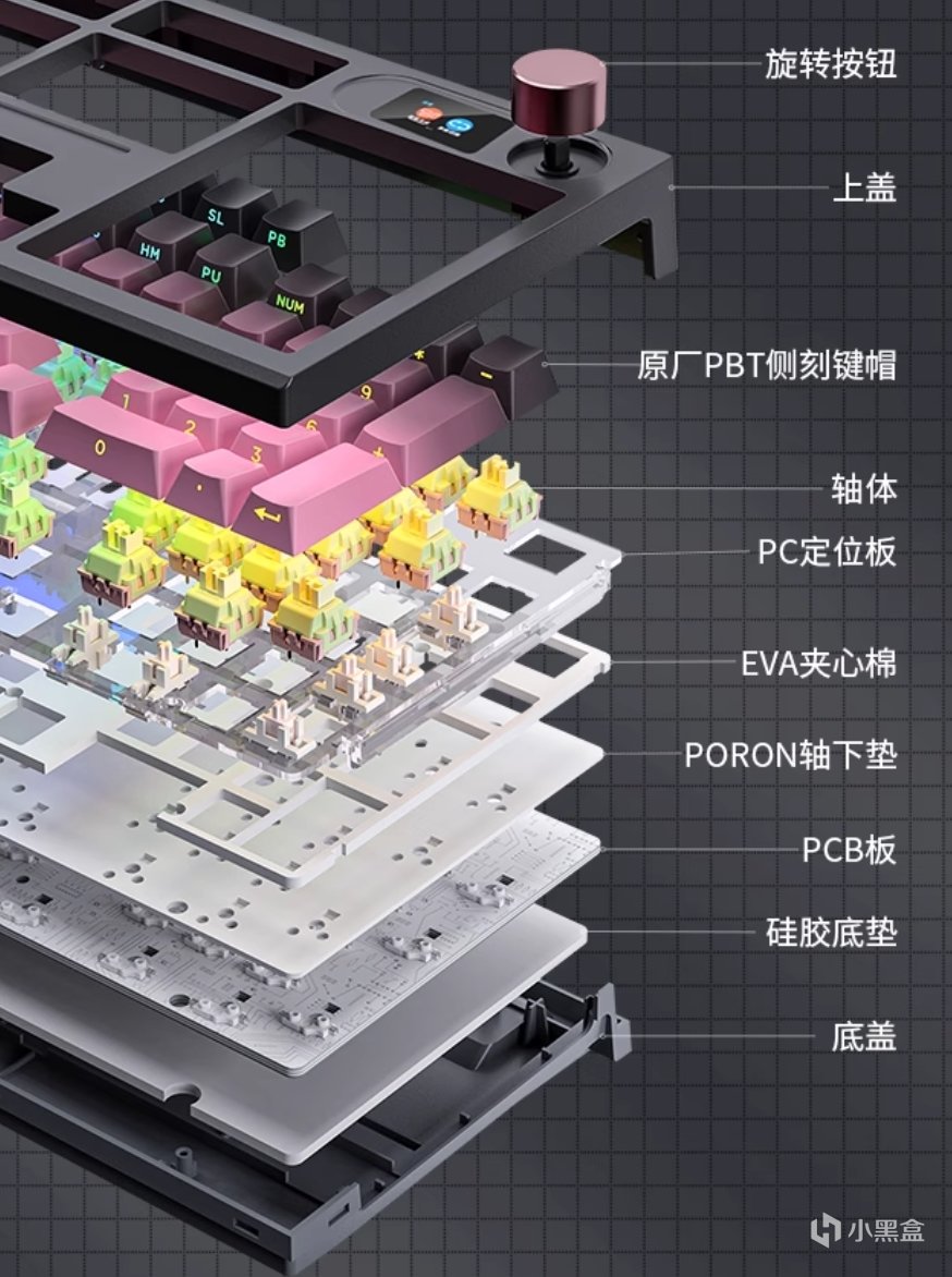 整體顏值還算不錯,感覺還挺耐看的。旋鈕是鋁合金材質,手感不錯,刻度感比較明顯。小屏幕可玩性很高,可以自定義gif,對於參數調整還算方便,不需要記快捷鍵或者進驅動。雖然不是主流的gasket結構,但手感確實不錯,聲音也還算hifi。整體手感非常壓手,有點份量、