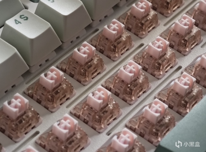 而另一款櫻粉軸,主打一個宿舍和平軸,觸發壓力很輕,在保證手感的同時,通過使觸底感覺更柔和來降低音量。而且,這款軸體的顏值,真的真的很高,在換軸的時候真的會驚呼amazing。