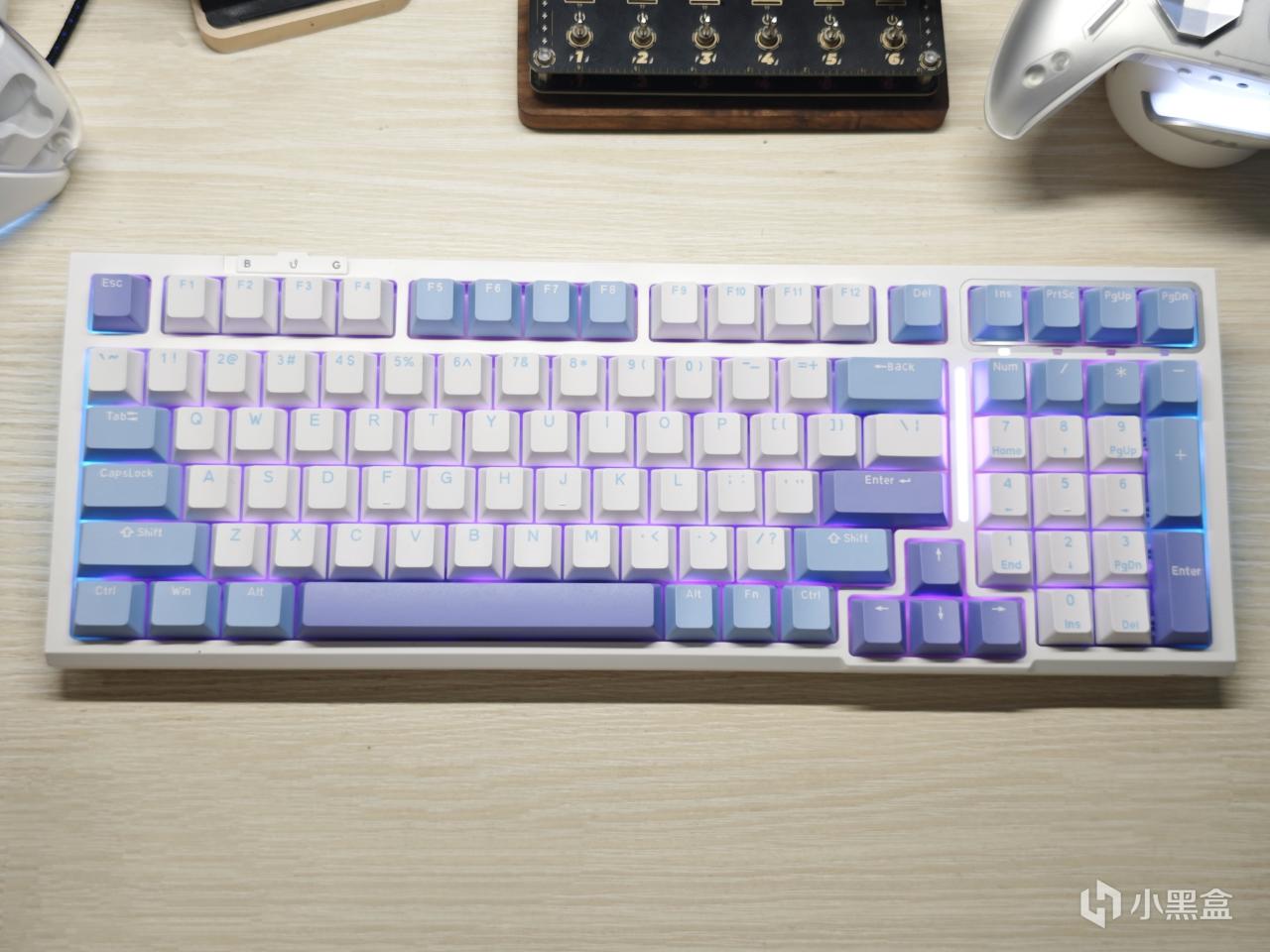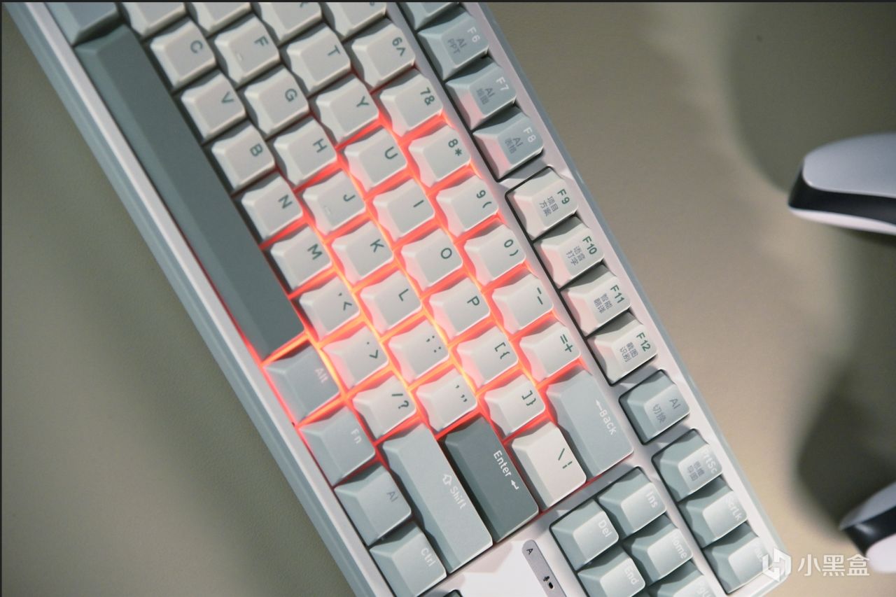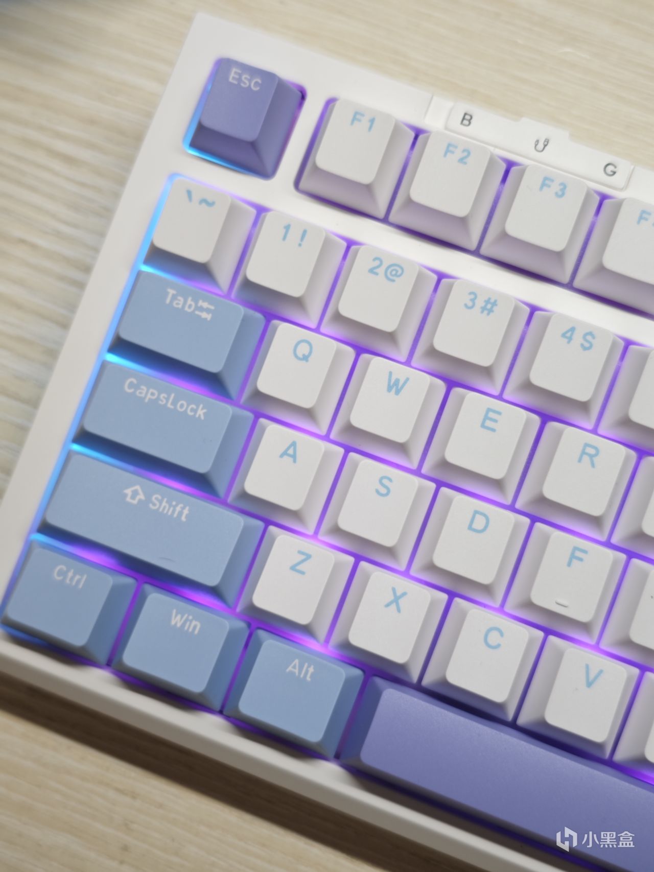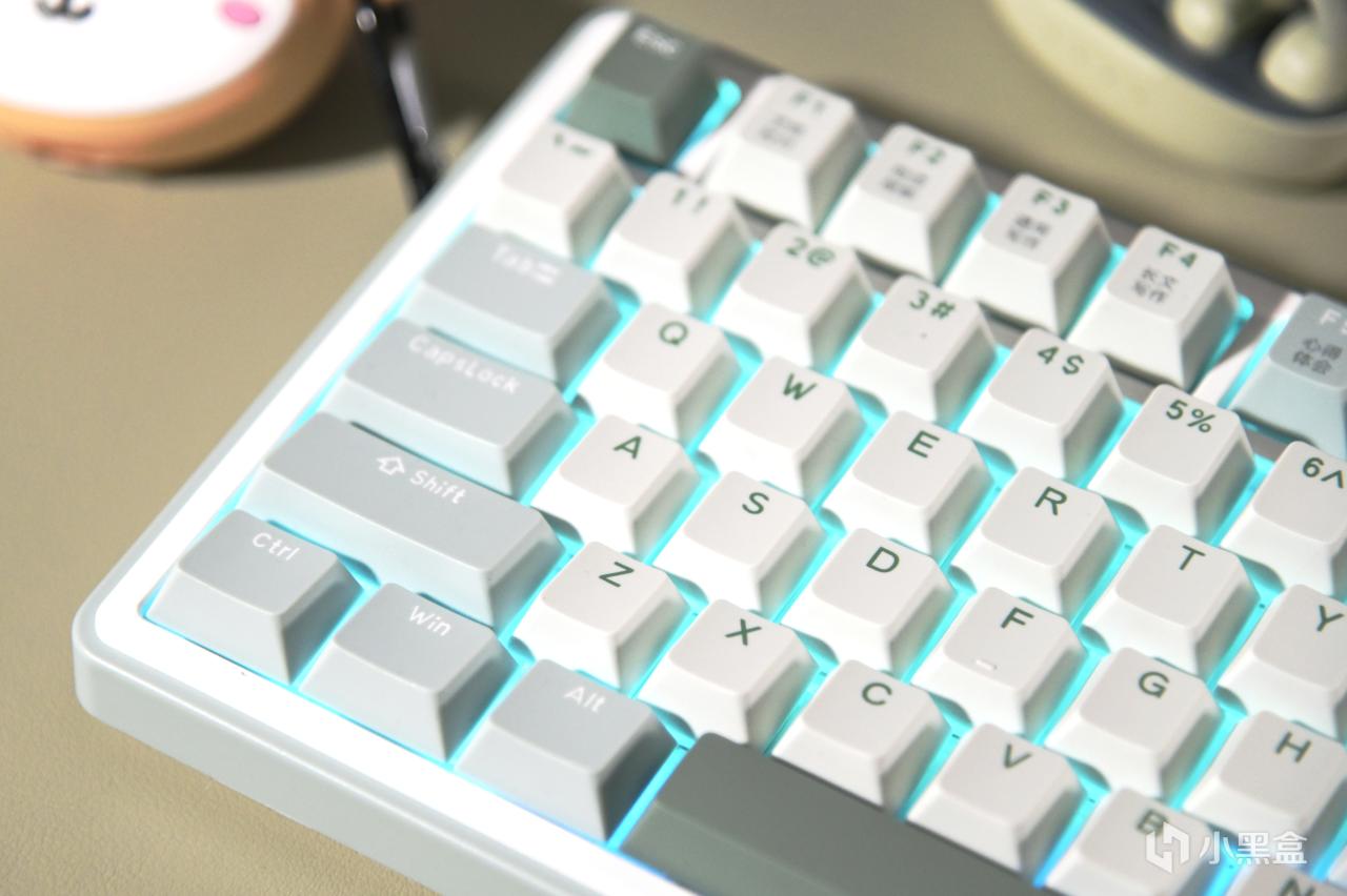 顏值方面比較簡約,能給打個7.5分,顏色比較清新、配色舒服,但是ai配字,有點過於辦公了。燈光方面也繼承了rk家優秀的燈效,算是非常好看。軸體方面,碼字體驗順滑爽脆,,軸體本身是不錯的,應該是套件的原因吧,手感和聲音都是偏脆的