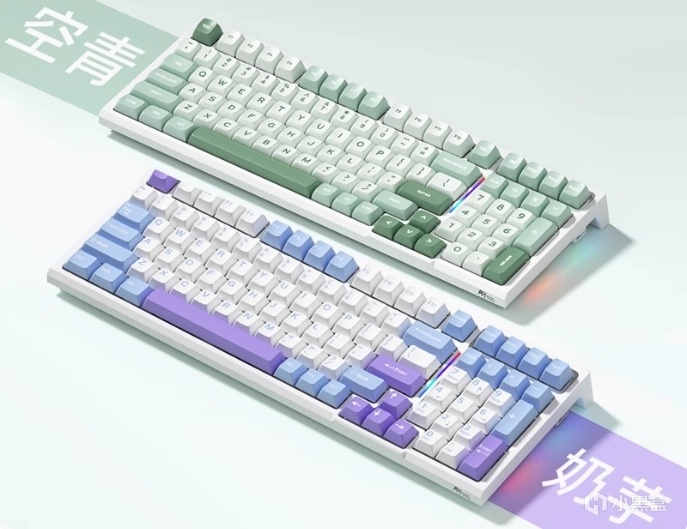 我入手的是奶芋配色,整體非常非常舒服,很合我的心意,但是咋說呢,沒那麼耐看,而且比較普通,沒什麼特點。而我也是從這把鍵盤開始,覺得rk家的燈光確實有點東西,很亮很好看,碼字的時候都感覺有加成了。