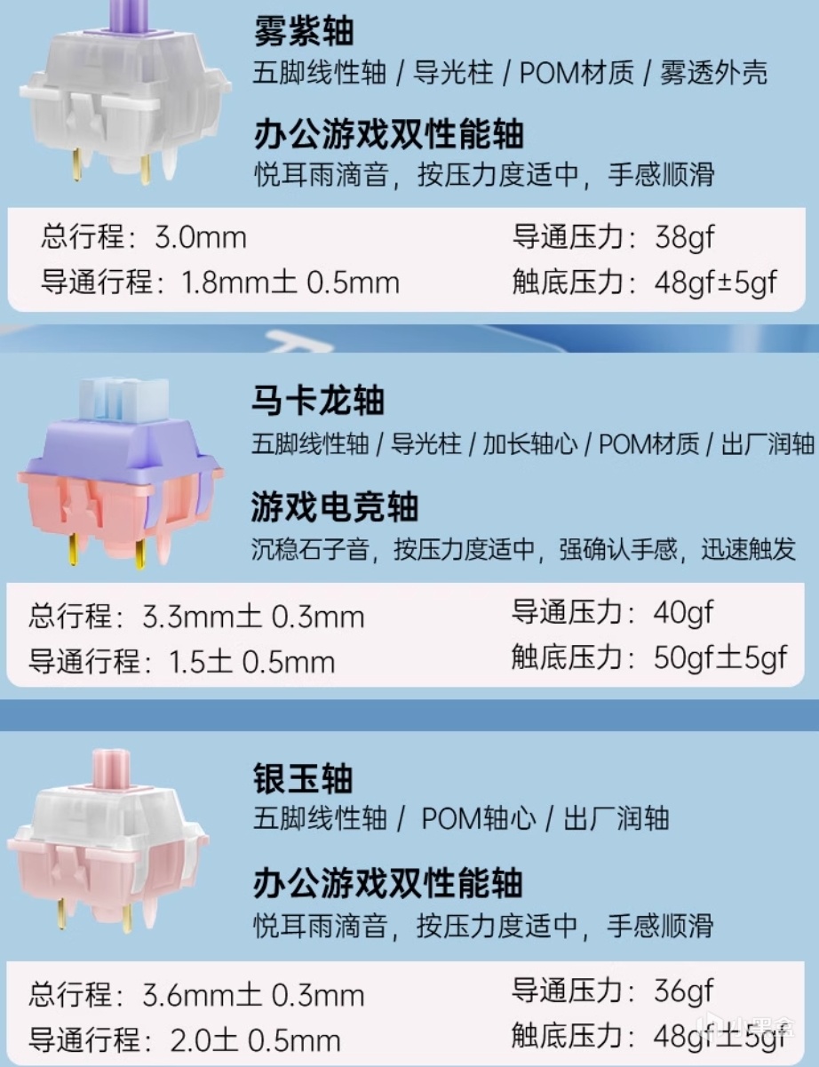 軸體:銀玉軸、霧紫軸、馬卡龍軸