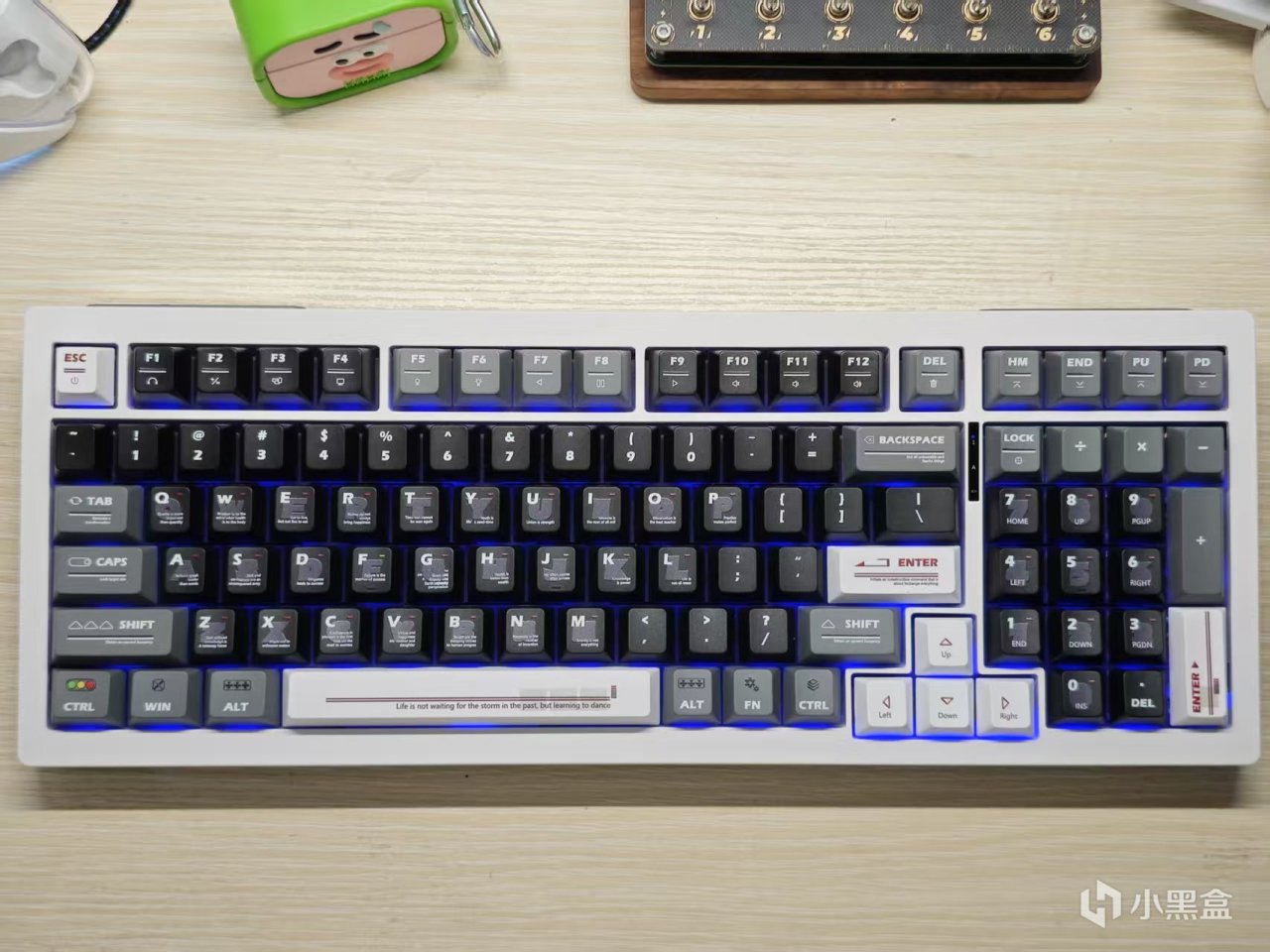 我手中的是高能玩家配色、馬卡龍軸,整體配色比較耐看,而且還有點小設計,算是我覺得比較好看的初始鍵帽了。由於是七層填充,手感和聲音都非常hifi,手感厚實,聲音偏石子音,是我用過最好聽的的鍵盤。電池也還蠻夠用,果然8000比4000就是耐用不少