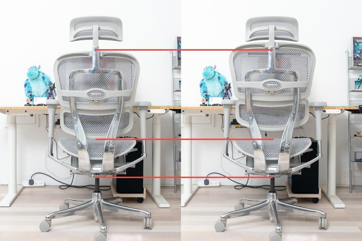 但是这个头枕上下活动的调节关节明显是有些过紧,别说坐在椅子上调整,就是站在椅子背后双手调整都有些吃力。