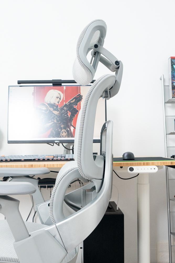 永艺Flow550的头枕调节范围是三款工学椅中最大的,对于颈椎的贴合不错。