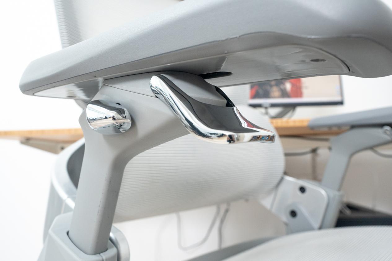 扶手相对于人体工学椅的其他部位而言相对独立,多维调节也相对更容易实现。优秀的工学椅扶手的应当能够做到高度、间距都能自由调节,时刻让手肘保持90°-100°的夹角,同时能够跟随椅背进行同步后仰,让手肘在休息时也不至于无处安放。