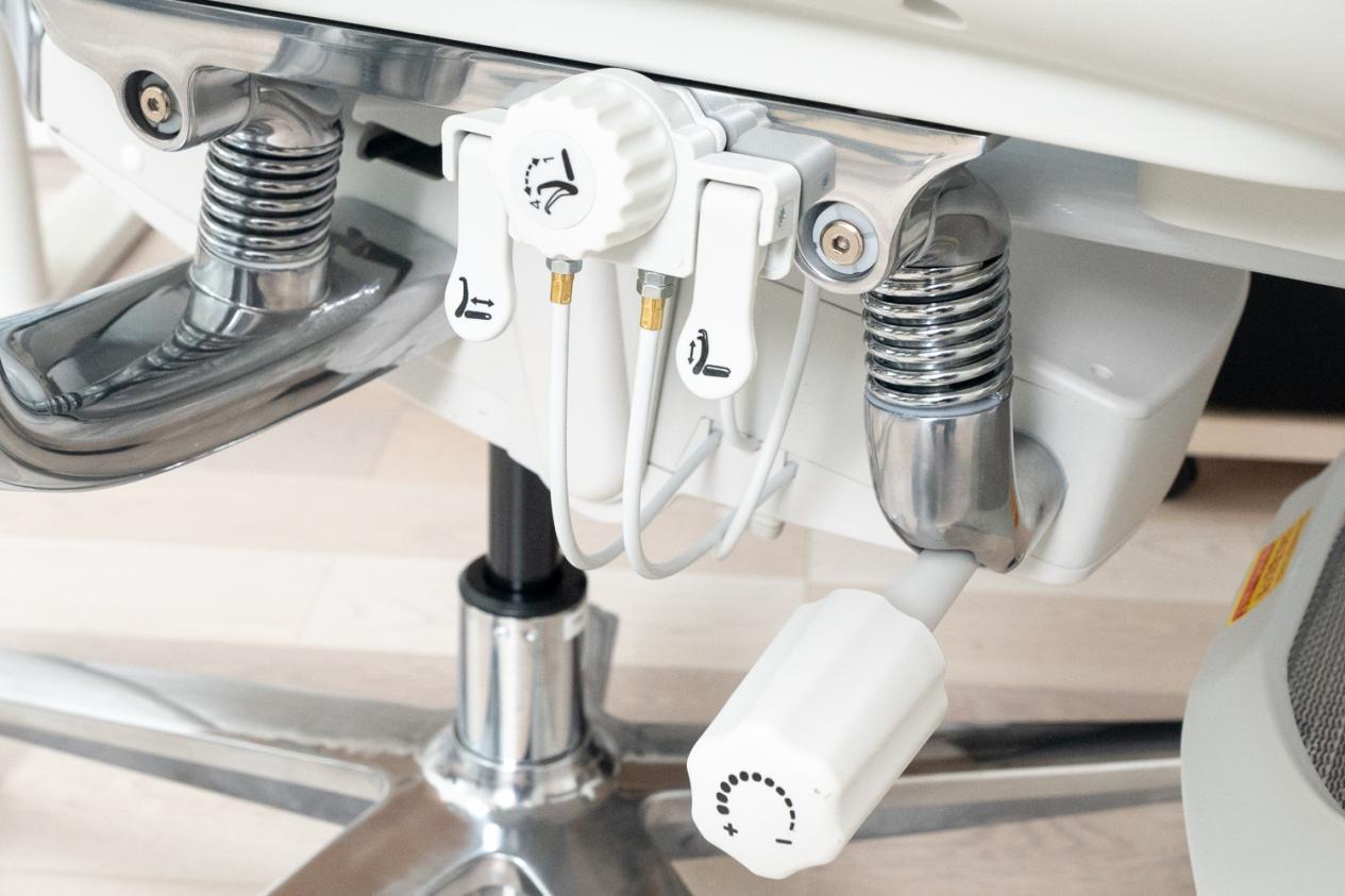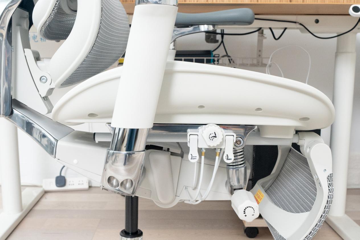 西昊 C500的各种调节机构虽然是都集成在同一位置,但是并不是像保友 金豪E2一样只通过一根拨杆就能完成全部的调节,在调节的时候需要拨动不同的机构,非常的麻烦。而且西昊 C500的底盘上各种线材也直接裸露在外,加上复杂的拨杆,给人的视觉效果就臃肿。