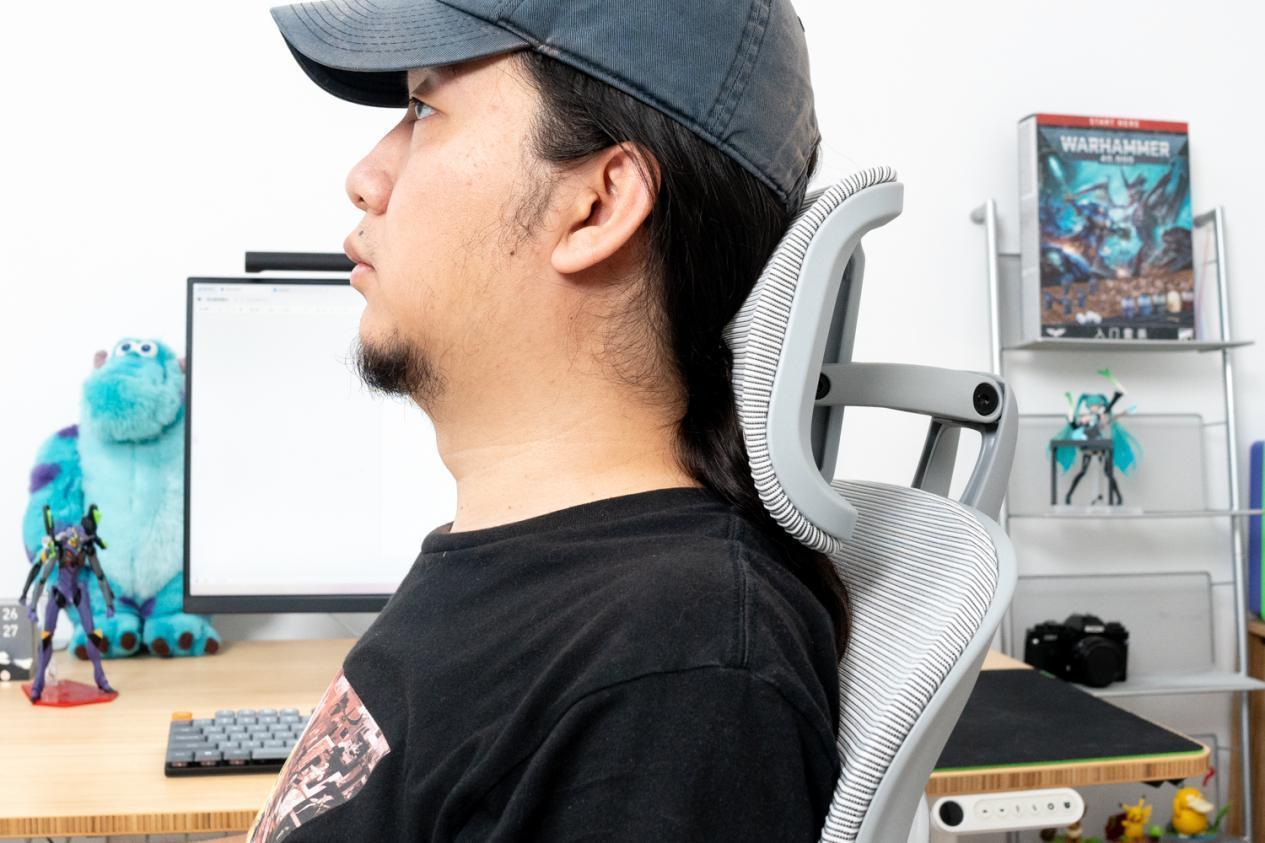 无论是正坐还是后仰,支撑力度都保持的很好,在后仰的整个行程中腰靠都能够紧贴腰部,给予腰部实时动态支撑。