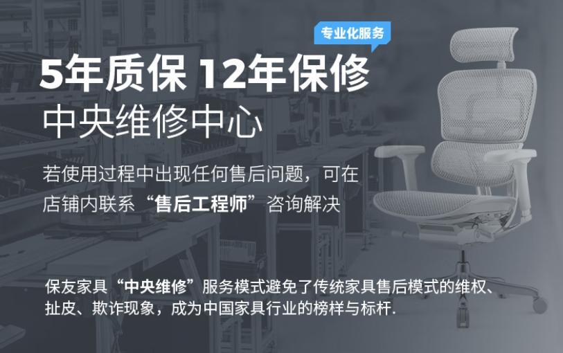 三款人体工学椅都提供五年质保,保友更是为自家产品提供12年保修,足以看出保友对质量的自信。