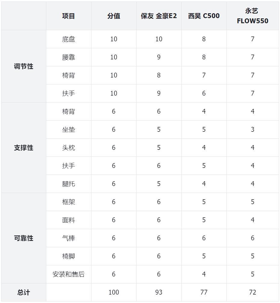 至于安装和售后,保友可谓是从安装到售后全程都无需消费者费心,超长的保修也彰显了对自家产品的信任,永艺FLOW550的表现中规中矩,西昊C500需要自行安装有些可惜。
