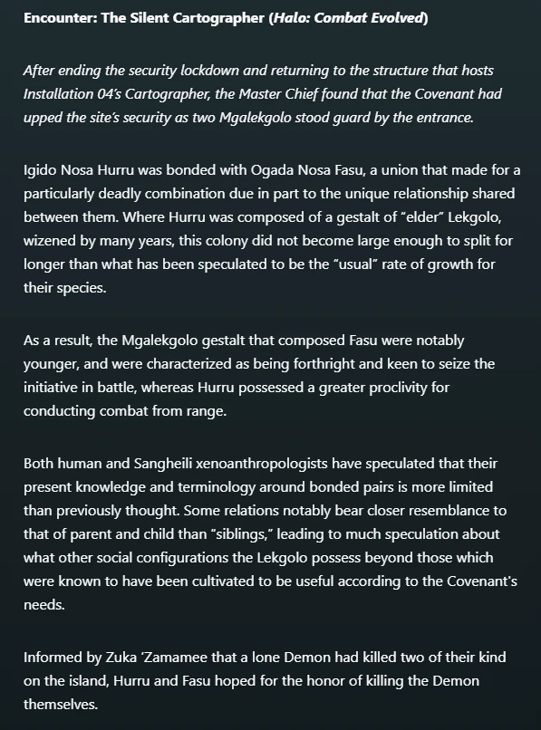 與祖卡'扎瑪米不一樣,諾薩兄弟在《安靜製圖機》關卡確有對應的敵方獵人單位。不論各位玩家以何種方式進行遊戲,本文均以《洪魔》小說原文以及光環航點官方文章爲正史,因此也不存在任何衝突。另外值得一提的是,別看玩家在《光環1》遊戲中只需一發手槍子彈即可殺死獵人,但在實際情況中,即便是百戰老兵約翰-117在對抗獵人時也絕不可掉以輕心,而在戰場上成雙成對部署的獵人往往能給UNSC地面部隊造成較大傷亡,若缺乏重型武器更是難以攻破。(儘管某隻野豬獸只需一次簡單的誤射便可直接秒殺獵人)