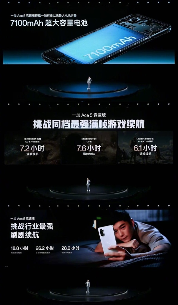 内置7100mAh单电芯冰川电池,是一加史上最大的电池,支持80W快充。