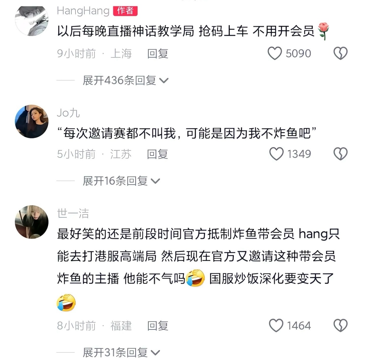 - 國服帶會員:退役後,HangHang開始嘗試在抖音平臺進行直播,憑藉着之前積累的人氣和獨特的直播風格,很快就吸引了大量粉絲的關注。一開始,HangHang在直播間開展帶會員活動,會員可上車與他組隊遊戲。他常在超凡局直播,儘管有觀衆認爲這屬於“炸魚"行爲,導致直播間節奏較大,口碑出現兩極分化,但也有觀衆覺得花錢和主播一起玩能獲得樂趣