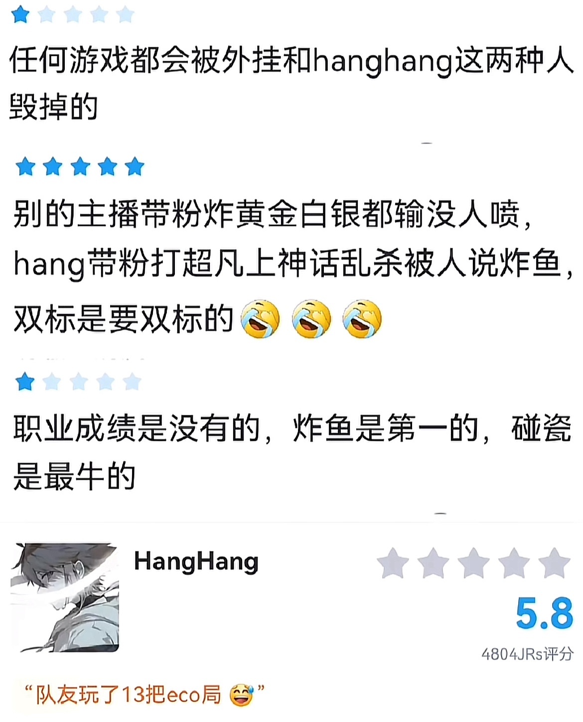 - 邀請賽風波:在2024年12月,抖音舉辦的“抖瓦杯“邀請賽中,HangHang沒有出現在參賽名單中。他在直播中回應稱是因爲比賽時間與自己的直播時間衝突,他的直播時間是晚上10點到凌晨4點,而比賽一般在下午或晚上進行,無法做到24小時都醒着來兼顧比賽和直播。這一事件在當時引起了一些粉絲和觀衆的討論,大量粉絲爲HangHang打抱不平。