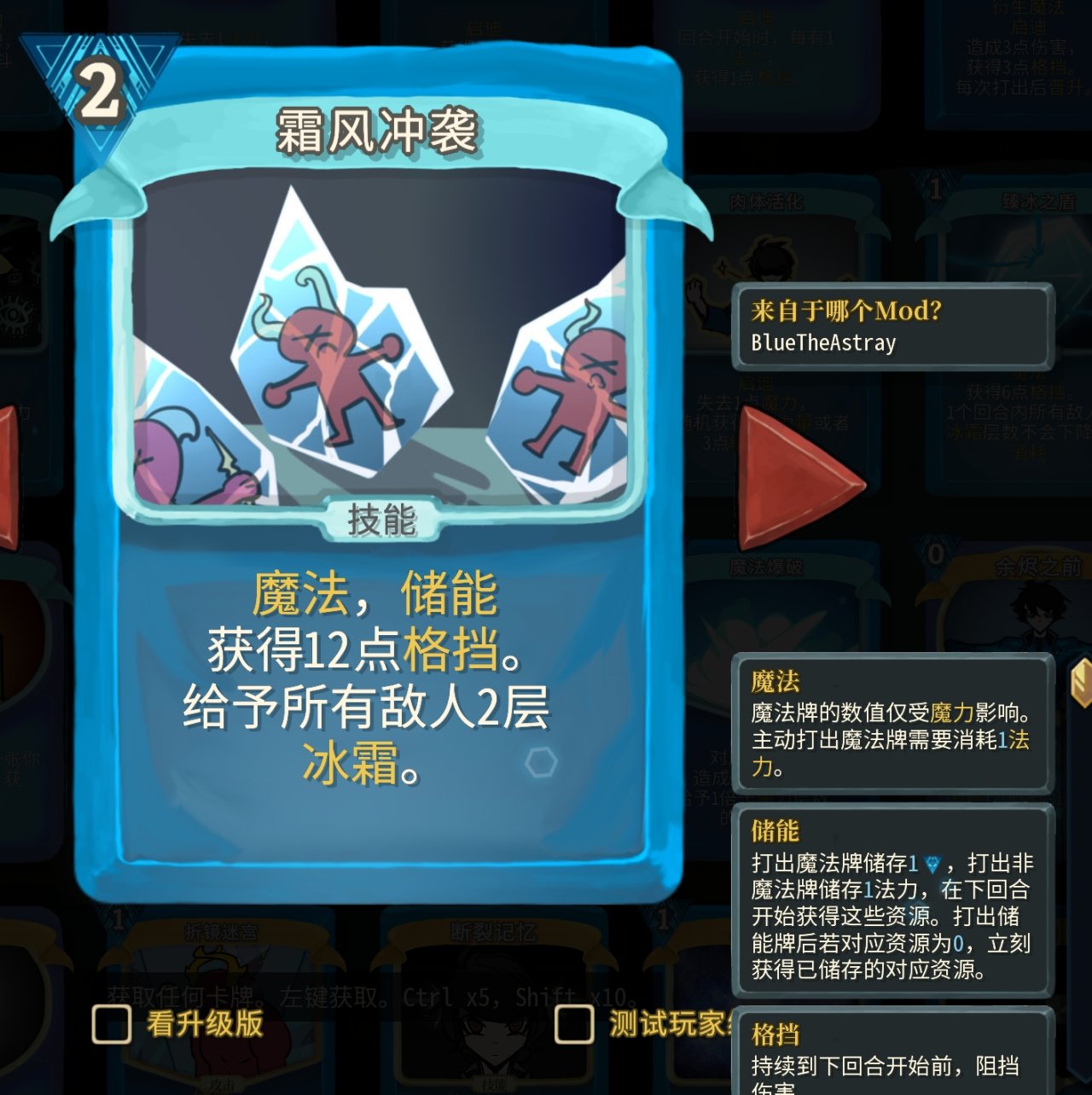冰霜:每層冰霜使目標造成的傷害減少1點。在目標回合結束時減半,受到非魔法牌的傷害後減少相應層數。意圖不爲攻擊的敵人獲得雙倍的冰霜