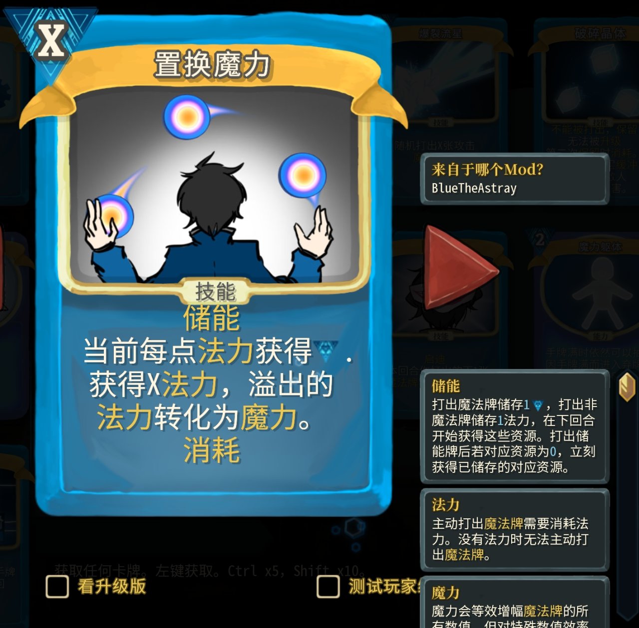 打出魔法牌儲存一點能量,打出非魔法牌儲存1法力,在下回合開始時獲得這些資源。打出儲能牌後若對應資源爲0,立刻獲得已儲存的的對應資源