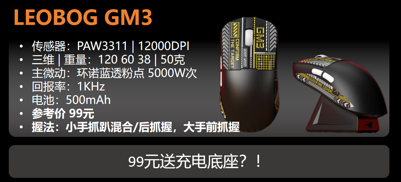 LEOBOG GM3有点GPW模具的意思,但是只有50g的重量以及500mAh电池。