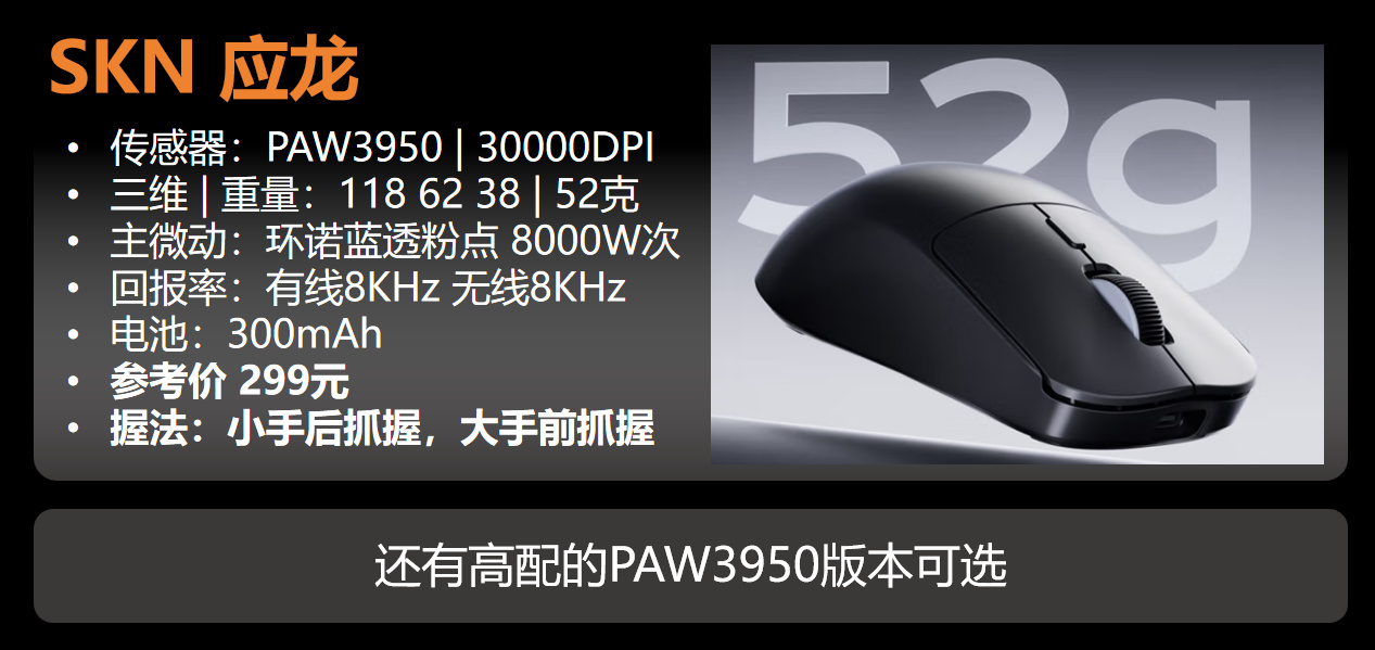 传感器:PAW3950 | 42000DPI
