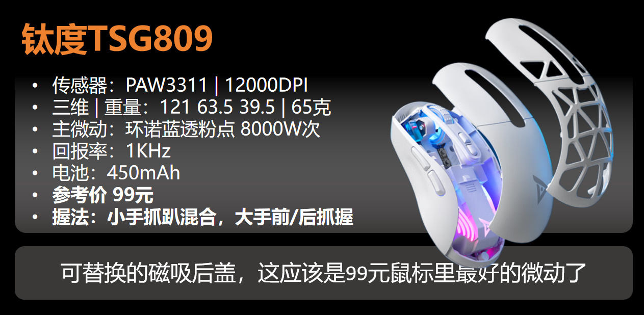 你没钱的时候,需要打游戏,用它能顶上。等你换旗舰鼠标了,它还能换上静音微动,安安静静当个办公鼠。这个鼠标绝对不亏,