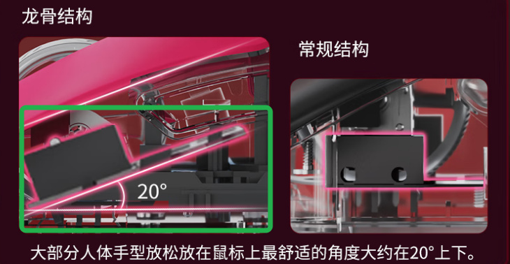 这个模具并不是那种背部驼峰居中的,而是相对靠后,按键部分会更平滑,有点像龙鳞ace。所以,这是给大手抓握的,尤其是大手前抓握,小手可能会有一点难受,不太推荐小手用户。