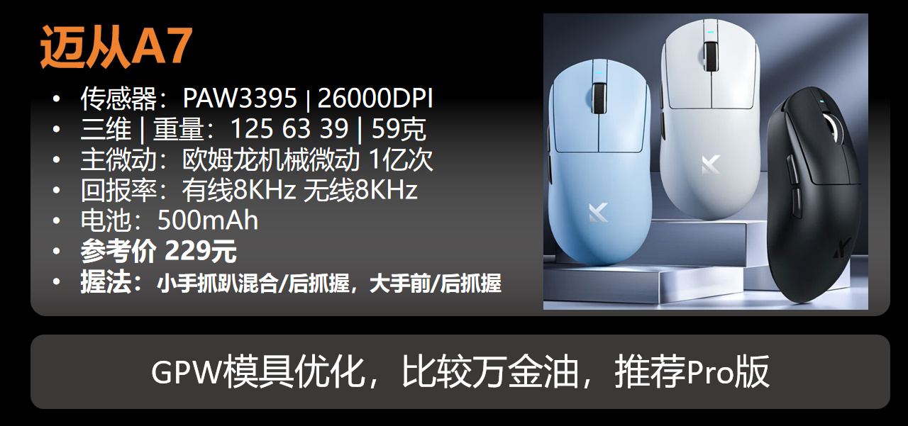 这也是推荐Pro的原因,因为Ultra版本虽然传感器更好,微动和别的几乎没变化,但是价格也来到了300块钱,着实划不来,3395已经足够绝大多数人打到最高段位了。