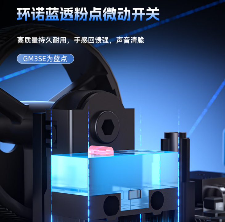 但是,能换后盖,还能换微动。自带就是8000W次的蓝壳粉点,手感清脆,已经小毕业的微动了。