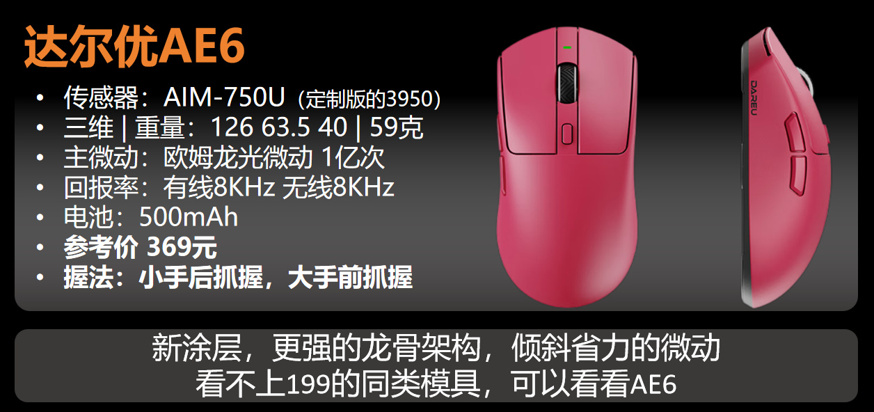 关于U2模具本身,只要你是用的对称鼠标,那这个极致收腰和较大屁股和涩涩涂层带来的锁定感,对抓握姿势提升巨大。