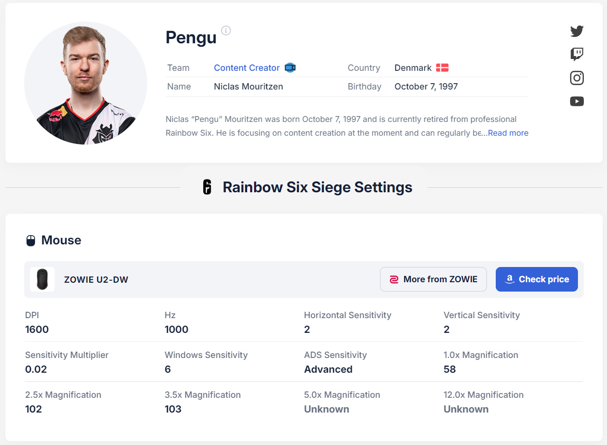 这个鼠标包括职业选手都在用,包括液体的nAts,帝国的decenty,还有Pengu和stanislaw。除了彩六的那哥们是1600,普遍设置都是低敏。