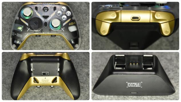 雖然這款手柄已經發布了較長時間,但其表現放到現在依舊亮眼,炫酷的顏值,調教優秀的全機械按鍵,不錯的參數,幾乎找不出什麼槽點,雖然十字鍵不是八向十字鍵,但其手感沒有絲毫遜色,觸發迅速旋轉順暢,體驗優秀,正面握持處做了防滑處理,底部帶有耳機接口,頂部有手機支架槽位,幾乎能想到的都給了,雙切扳機的切換開關位置比較奇特,位於扳機上而不是在背面,此外手柄還有炫酷的底座可供選購。