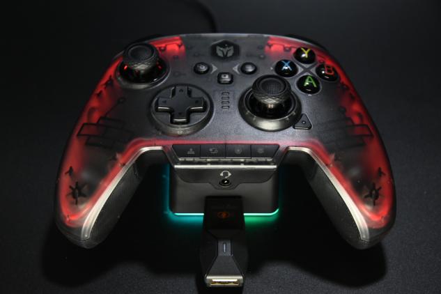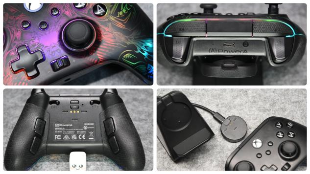 這款手柄進推薦給想要無線玩Xbox,又想要炫酷燈效手頭寬裕的玩家,流光LED真的很帥,開燈和不開燈完全是兩個手柄,搖桿支持旋轉升降,防滑處理也非常到位,將橡膠握把紋理化,即防滑又抗污,還支持扳機震動,帶有底座,可拆卸的模塊底座設計也非常使用。