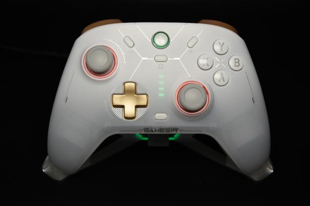 在左右握把處採用了半透明的設計,並且做了非常優秀的防滑紋理,此外還有兩條燈帶,配合贈送的底座有着不錯的燈光聯動效果,全機械的按鍵我非常喜歡,相比導電膠十字鍵,機械按鍵的十字鍵顯然更適合格鬥遊戲,而這款手柄的十字鍵爲七層八向自研十字鍵,有着優秀的調教,十分適合用來搓招,雙切扳機的使用也讓這款手柄在射擊遊戲中,可以更快速的開槍,不過切換爲微動後按壓的手感有些稍稍偏硬,但官方已經改良後面批次貨物,據反饋,後一批微動手感合適。手柄共有三種配色,都十分好看,TMR搖桿的使用,也讓這款手柄的操作更加精細,再加上全機械按鍵的配置,200元內配置直接拉滿。