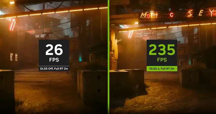 DLSS可以简单理解为牺牲部分画质,提升游戏帧数的游戏技术。目前已发展到50系的DLSS4版本,大部分情况人眼看不出压缩画质和原生画质区别,但帧数有实打实的提升: