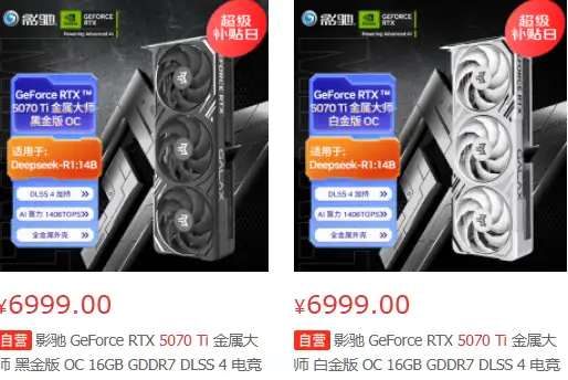 但价格上,5070TI的售价参考某线上,普遍在7K元左右: