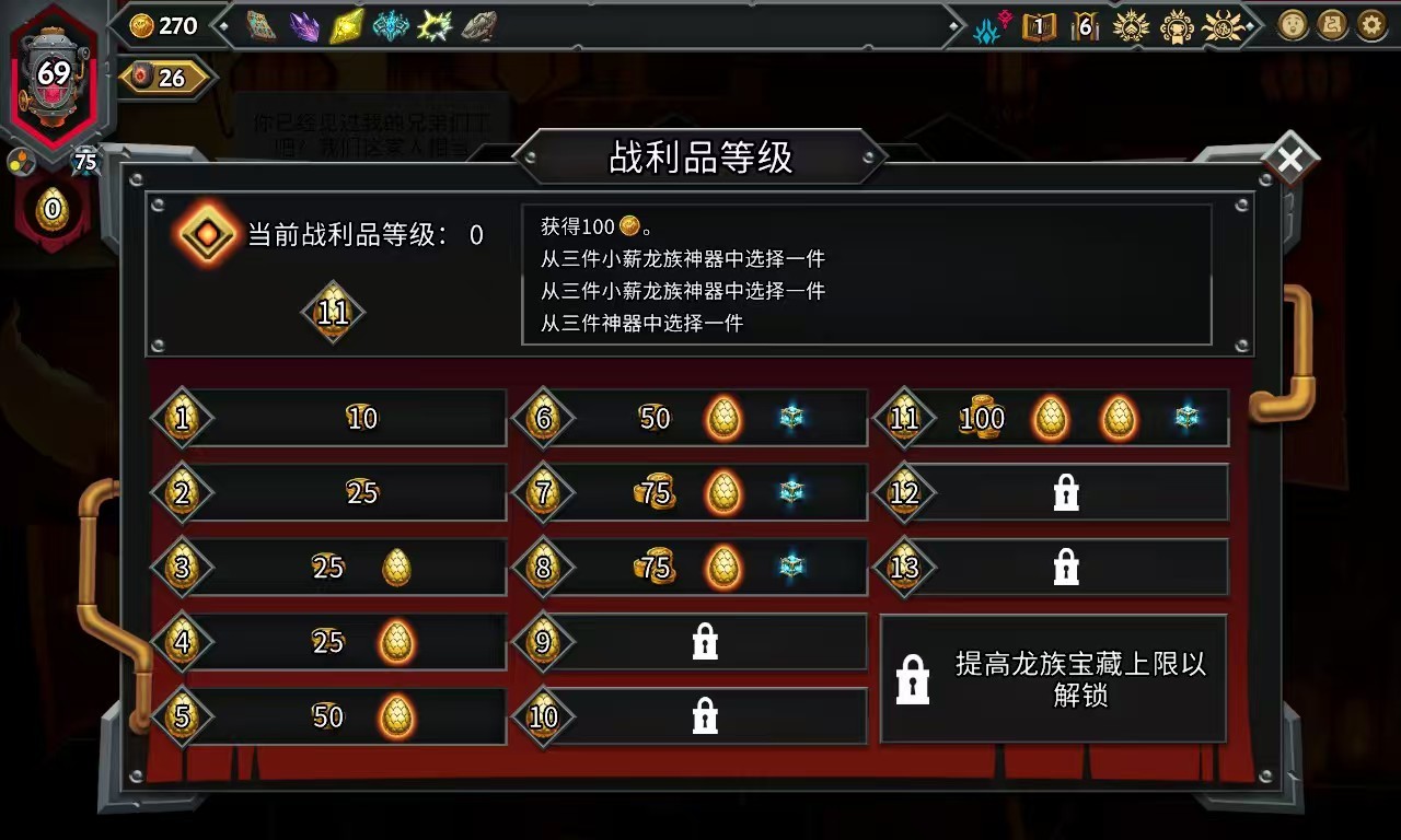 如果大伙有玩过云顶或者是铲子,喜欢玩收菜羁绊的话,应该对龙族很熟悉,是的你没有听错,薪龙的一个玩法就是龙族,需要利用卡牌或者是主角的发动能力获取(前提是你在升级主角时有选这个金蛋的强化),由于初始上限只有8点,并不支持我们开出较高层的奖励,我们需要卡层数去赌遗物,3层随机薪龙神器或者是4层3选一薪龙神器,拿到两个宝藏上限遗物。