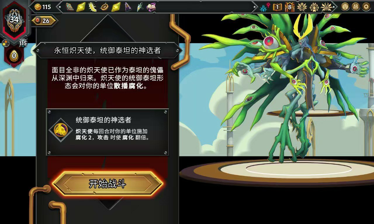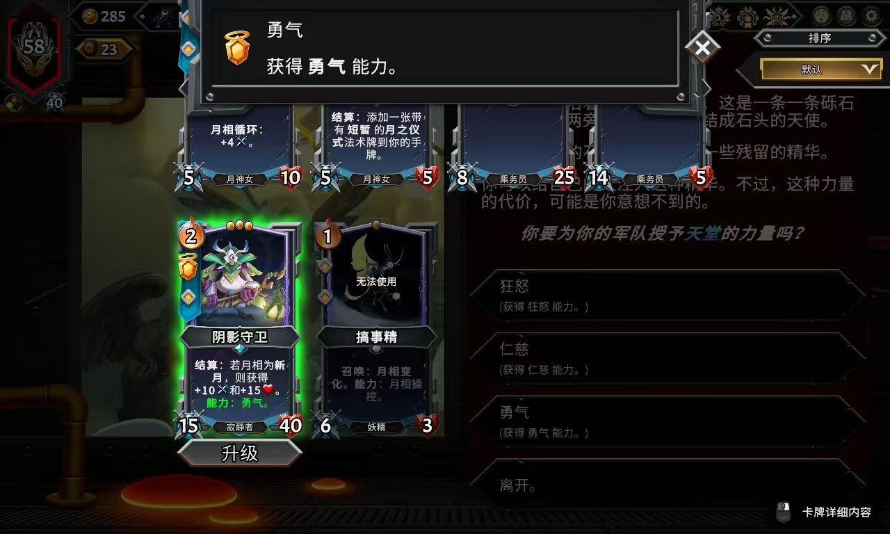 二代的事件房个人感觉收益很高,最经常遇到的就是根据选择的种族提供相应的buff,像这里我选择了天使与月巫两个种族,事件就生成对应天使的能力,给兵种附魔增强;