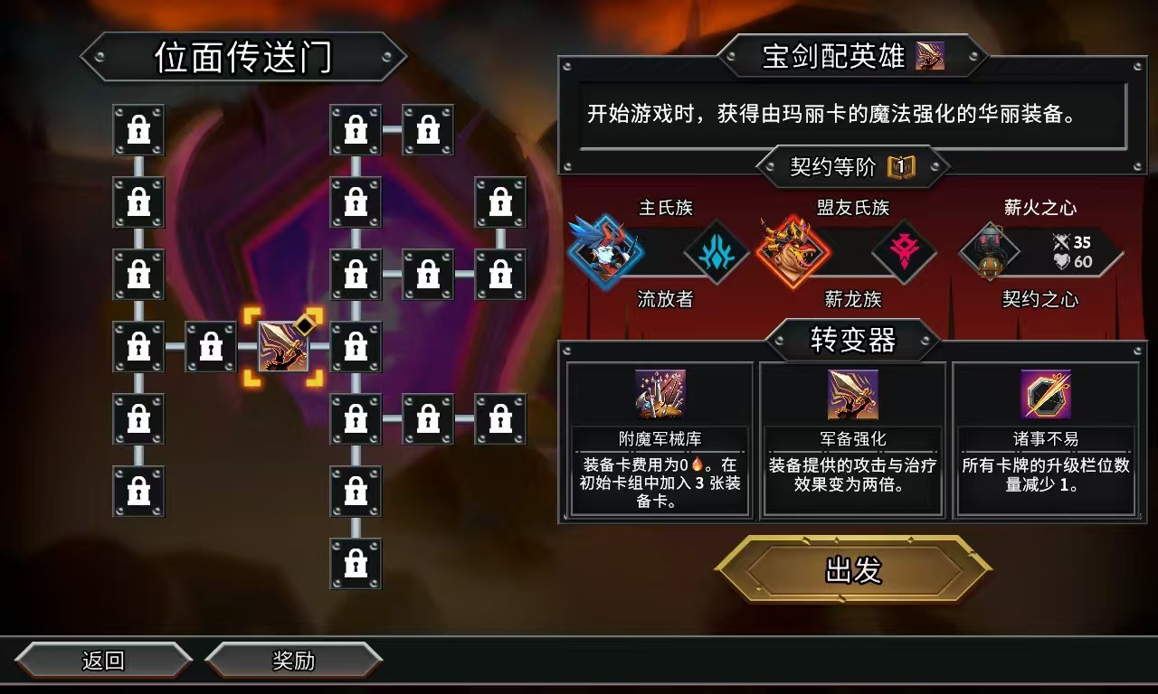 一共是21个关卡,限制种族,限制契约等级,限制转变器,限定薪火,在特定情况下完成挑战,打通一定数量的关卡可以给予一些奖励,一般来说,拿到第一个解锁薪火即可。