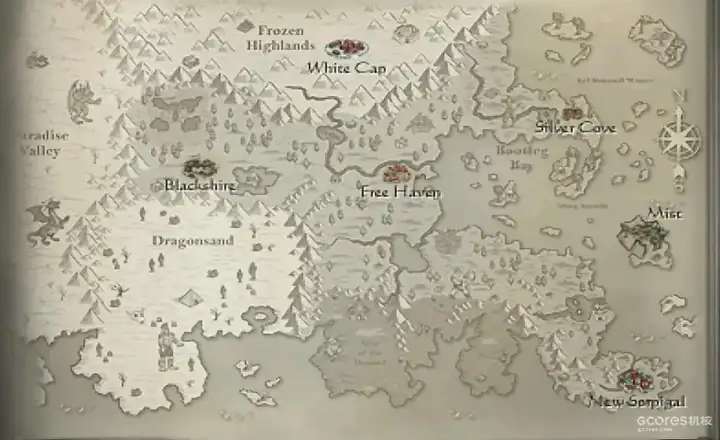 恩洛斯大陆并非完全开放,它其实是由竖3格横5格,共计15个独立区域拼接而成。你从最右下角的新索皮格地区开始,通过步行、驿站船只甚至是传送魔法在这些地区之间辗转,完成各种任务。
