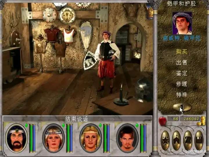 前几部由智冠代理的系列作品,其实也有中文配音,但那时候来来去去也没几句台词,相比《天堂之令》来说工作量自然少得多。本作即便是同一类型的商店,里头也采用了多种配图和店主造型,不同商店对应各自专属的语音——糟老头子铁匠,高傲的兵器收藏家,毛躁杂货铺大叔和势利奸商,每个人都有自己的个性。而育碧也都纷纷为其赋予了专属的配音。