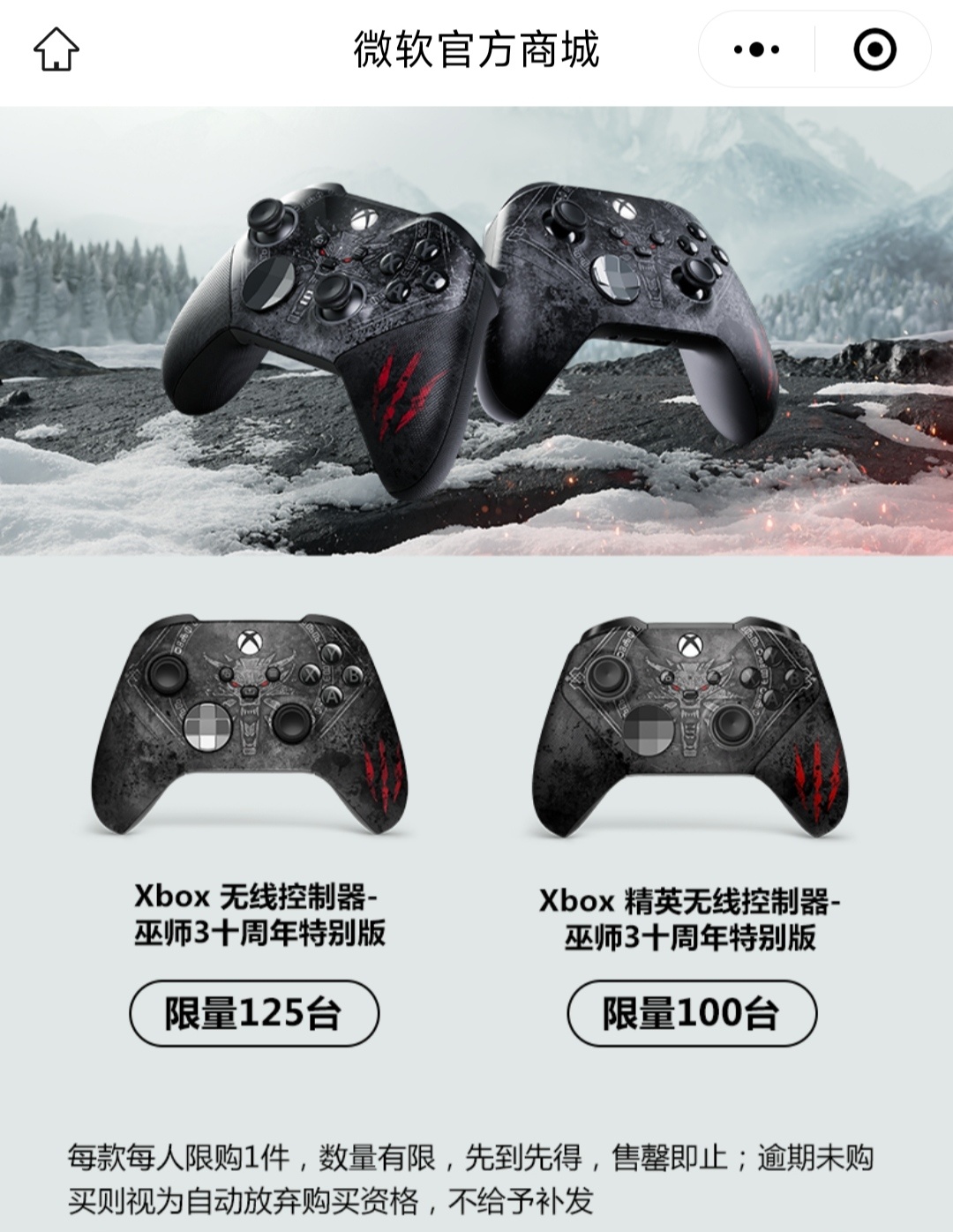 微軟天貓官方旗艦店目前顯示《巫師3:狂獵》十週年紀念版Xbox手柄已下架。