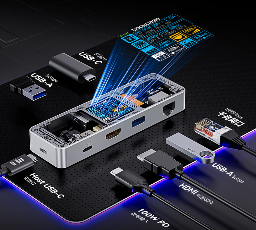 多凯斯作为专做扩展坞,硬盘盒等外设的品牌,也算是跟“小屏幕”杠上了,除了HUB状态直观展示外,也带上了极客属性。