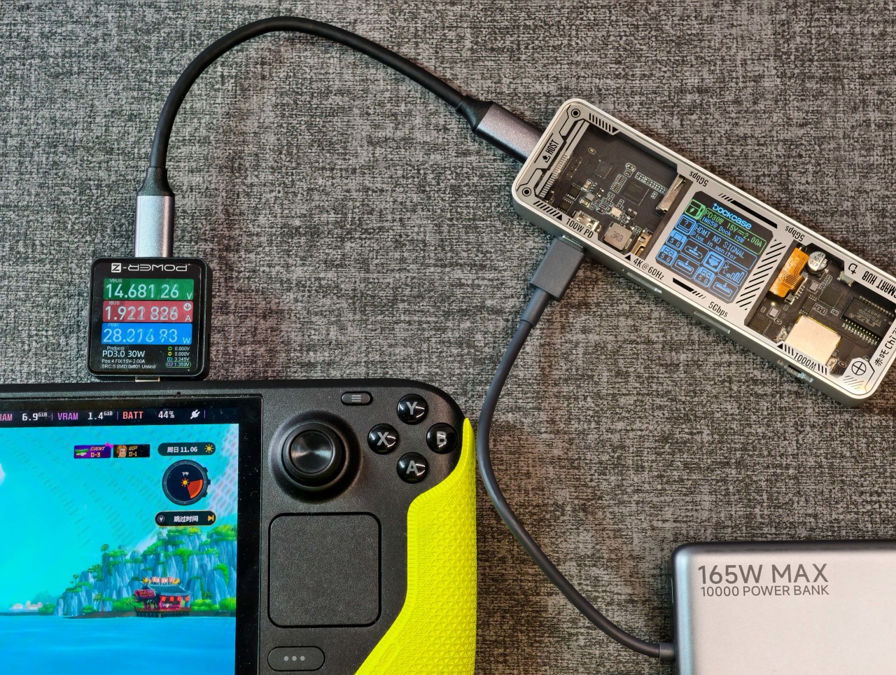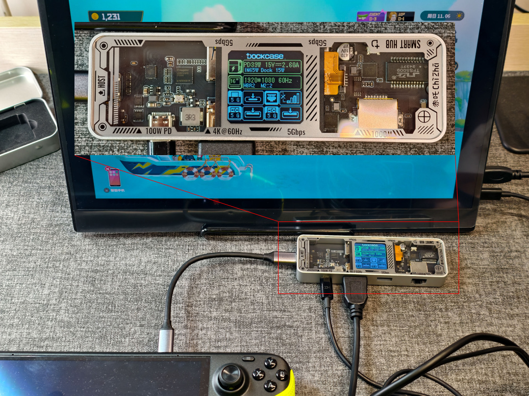 当然,值得注意的是在外接电源的情况下,通过拓展坞供电,Steam Deck只能做到30W供电,个人猜测SD请求15V3A共45W供电被拓展坞分走15W用作外接设备冗余。