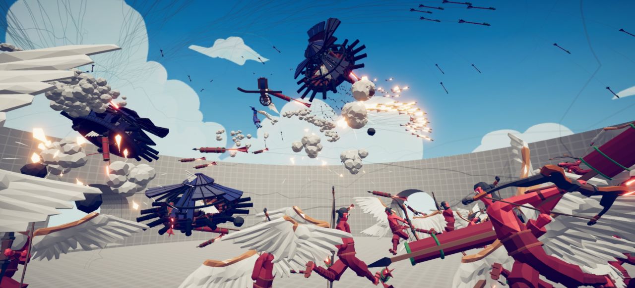 如果你好奇這兩個地面兵種爲什麼在空中像陀螺一樣瘋狂旋轉,那麼歡迎來到《全面憨憨戰爭模擬器》的全新更新:“BUG”DLC。