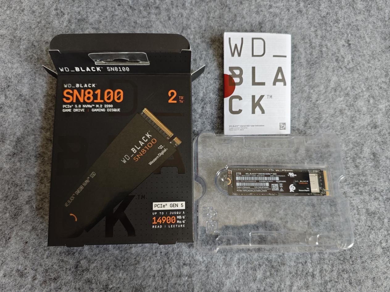 WD_ BLACK SN8100的外包装是常见的固态硬盘外包装盒,里面有一层塑料壳进行保护硬盘本体。