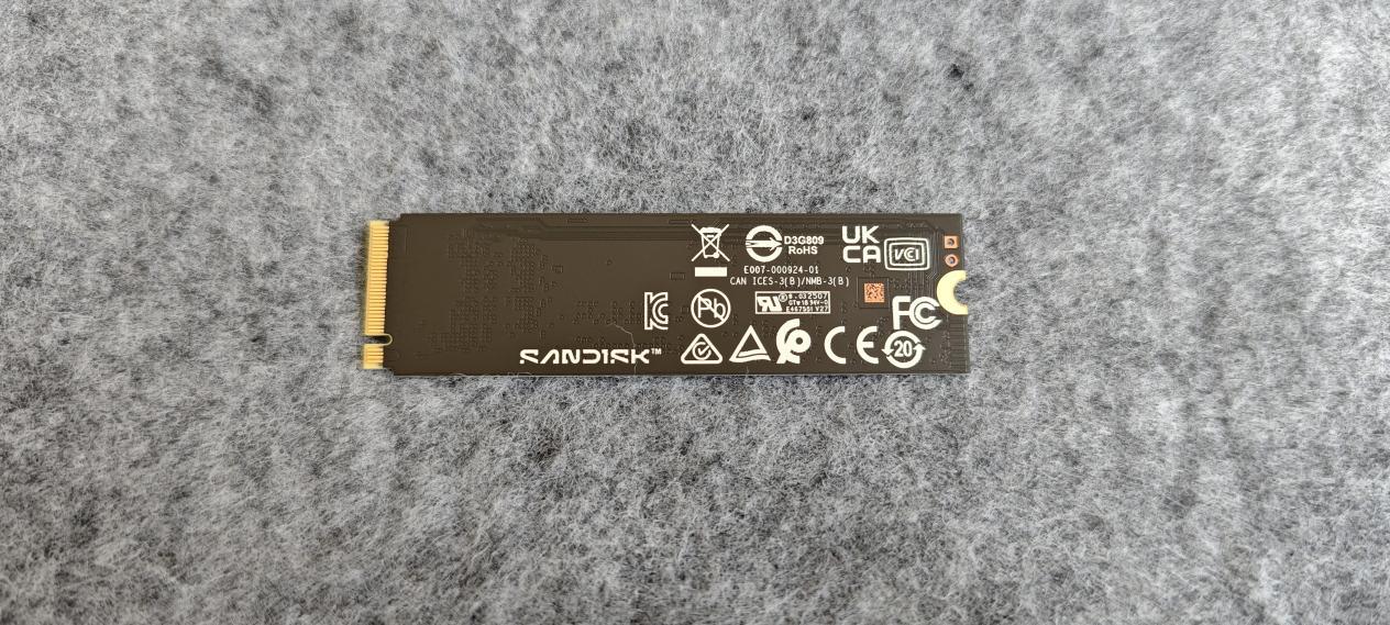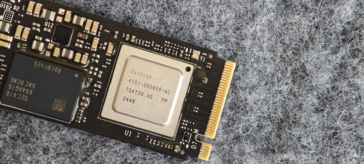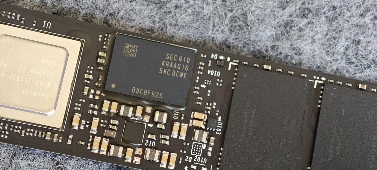 闪存采用第八代BiCS8 TLC颗粒(218层堆叠),由闪迪与铠侠联合开发,单通道速率为3600MT/s。2颗组成的2TB容量,单颗1TB容量。