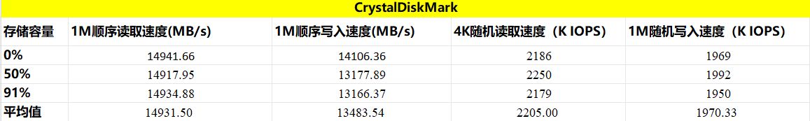 平均顺序读取速度在14000MB/s以上,平均顺序写入速度在13000MB/s以上。