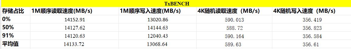 下面将对这款固态硬盘进行读写速度测试,本次将以0%空盘、50%脏盘、91%满盘,这3种情况下分别进行测试。测试工具分别为:CrystalDiskMark、TxBENCH、ATTO 磁盘基准测试。